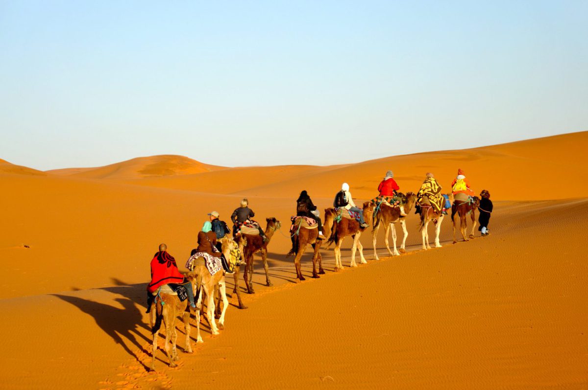 3 Days tour from Fez to Marrakech via Desert of Merzouga departure will be at an early hour in the morning, where we will pick you up from your Hotel in Fez to the south. We will stop at Ifran, which is known as the Switzerland of Morocco, in order to savor this lovely place and take some memorable photos, and at Azrou, in a cedar forest, to see the monkeys and feed them, then at Midelt in a restaurant to have a delicious lunch. We will continue until Erg Chebbi Dunes, passing by Tizi-N-Tlaghamt to reach Errachidia, enjoying the stunning views of Ziz Gorges, Aoufous, and Erfoud. At Erg Chebbi Dunes, we will check into a hotel to get prepared for an hour and a half of amusing Camel trekking, toward the camp where we will have dinner and stay the night, and to clearly enjoy the atmosphere and the sunset over there.